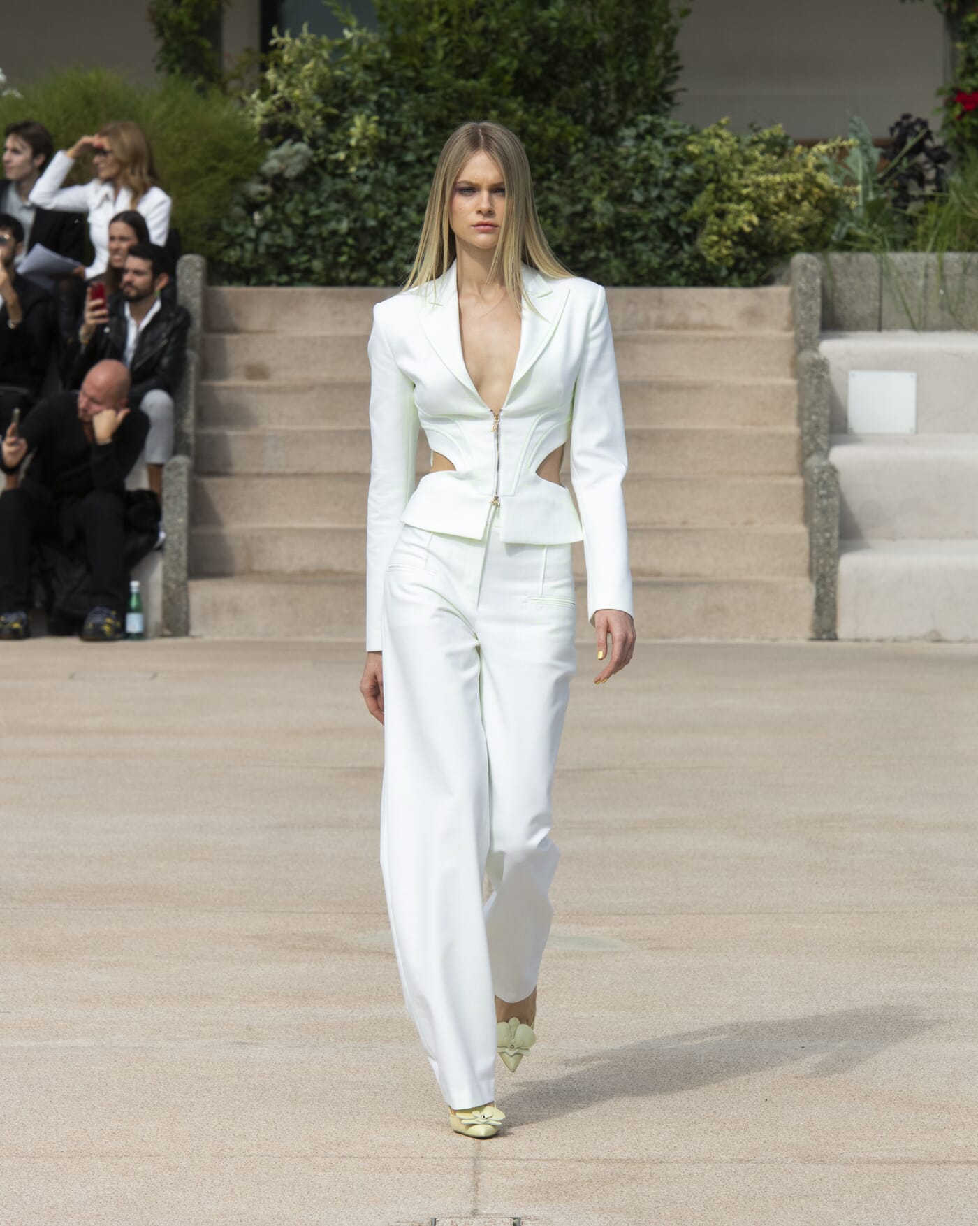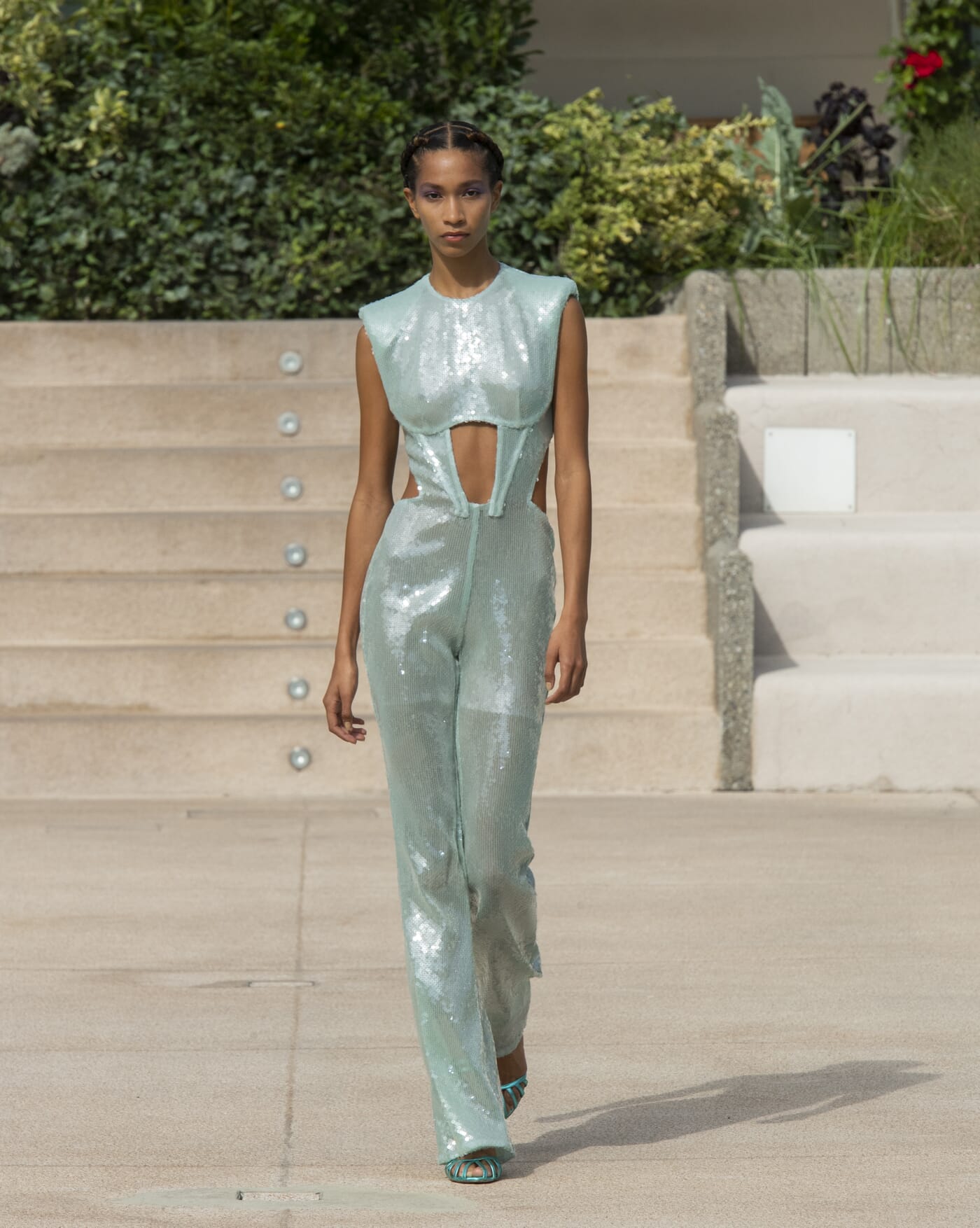 The common thread running through the collection is the corset, interpreted for day with airy fabrics in tops, jumpsuits and cut-out dresses, and made ultra- feminine and audacious for evening.