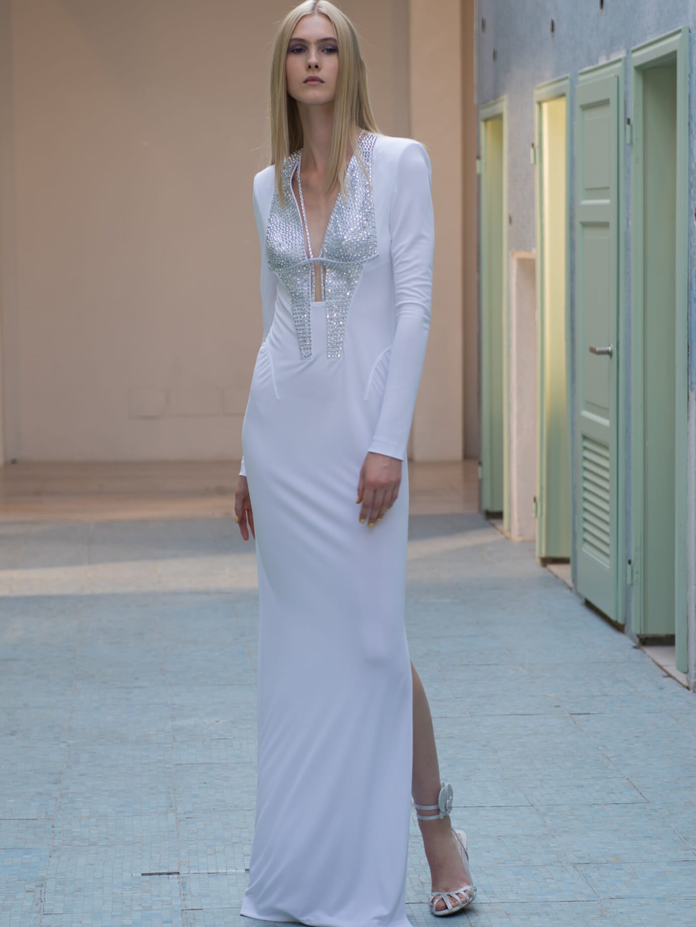 In feather-light dresses and jumpsuits with sequins and aquatic translucencies, and in the metallic sheen of silk jersey dresses that gently wrap and flatter the body.
